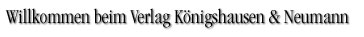 Willkommen bei Königshausen & Neumann, dem Verlag für Philosophie, Psychologie, Literatur-, Kultur- und Sozialwissenschaften, Pädagogik und Zeitgeschichte.